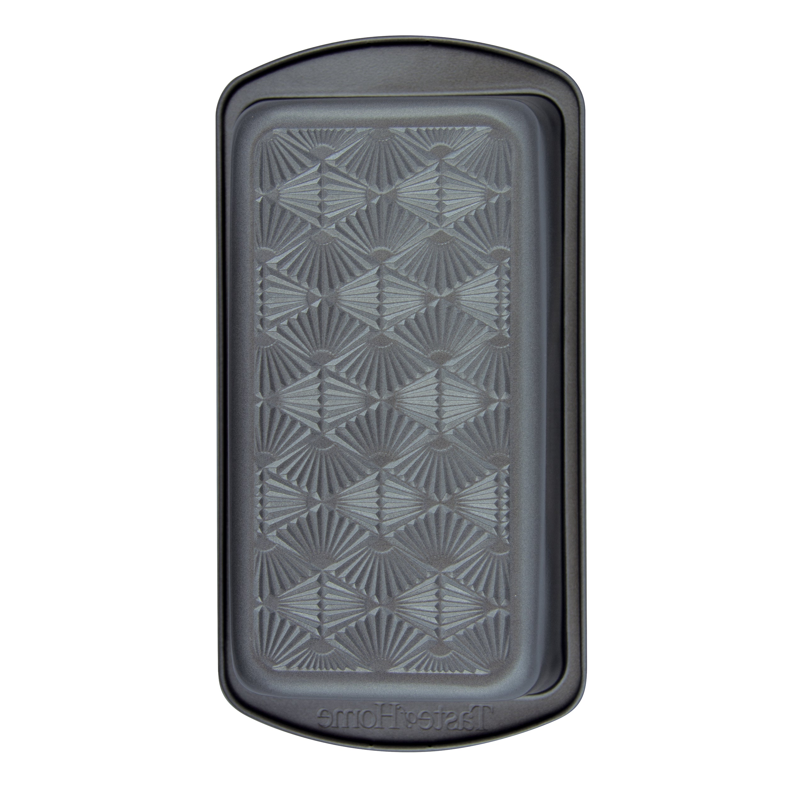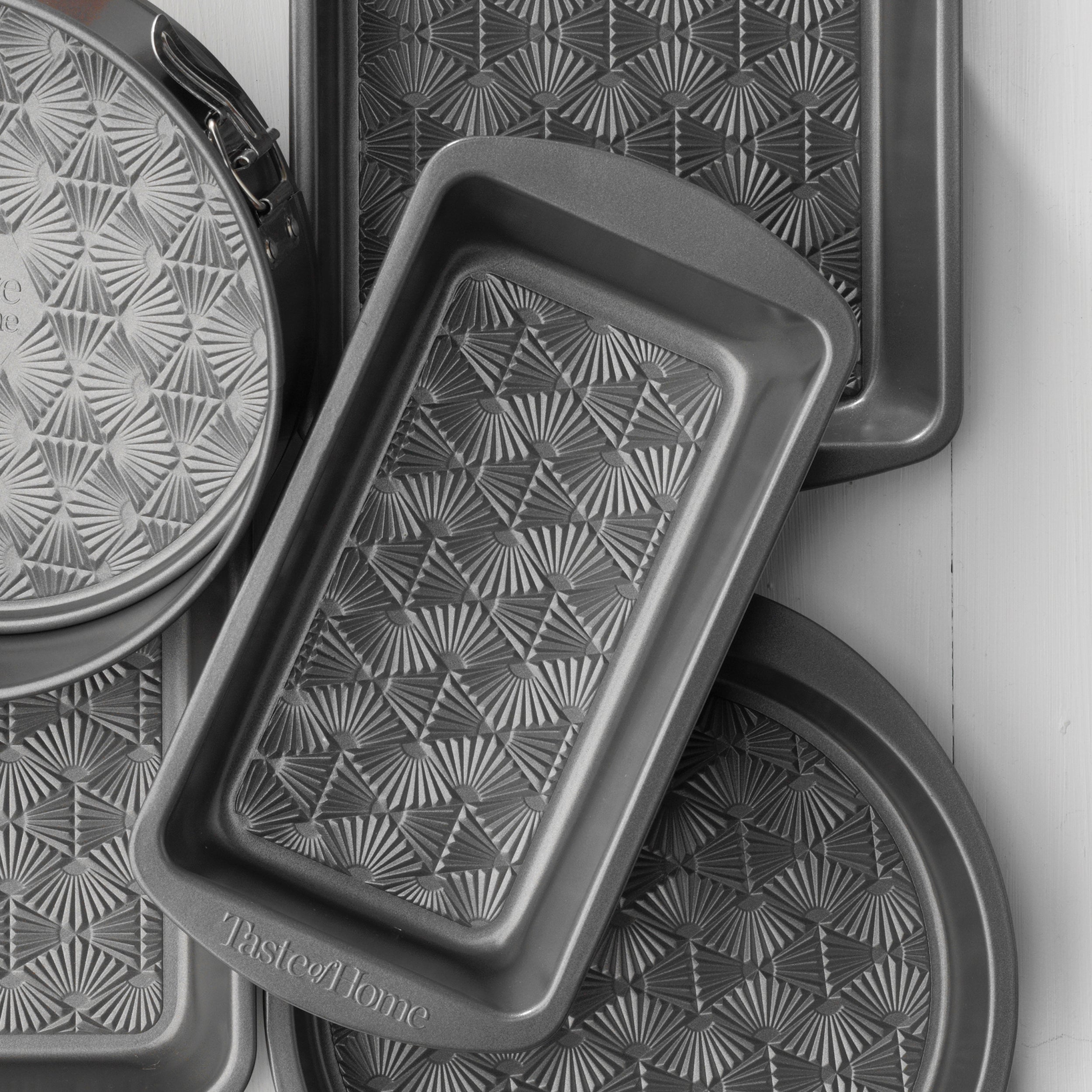 Bake your family favorites in the Taste of Home® Non-Stick Metal Loaf Pans. These durable loaf pans are designed for everyday use and make an ideal choice for the home chef. You'll enjoy baking a variety of foods from sweet, dessert-style breads to crusty sandwich breads and hearty meatloaves! Our bakeware features an embossed geometric design that strengthens the baking sheet while increasing the air-flow to food, creating evenly distributed heat for consistent baking every time. This beautiful geometric pattern is carried throughout most of the Taste of Home® product lines, adding style and function to the tools in your kitchen. The Ash Gray color of the bakeware is complementary to modern kitchens. The premium non-stick coating allows for effortless release of foods and will enable you to prepare healthier treats with minimal to no prep to bakeware before baking process, leaving you to feel good about the food you're serving. The easy-to-grip handles make this loaf pan easy to transfer in and out of the oven. When it's time to clean up, simply place your bakeware in the dishwasher for easy cleaning. The whole family will savor sweet slices of pound cake and enjoy sandwiches featuring slices of your homemade bread. All Taste of Home® products are designed in partnership with and rigorously tested by the Taste of Home test kitchen and are Test Kitchen-approved. Make sure to snag your Taste of Home® Non-Stick Metal Loaf Pan today.