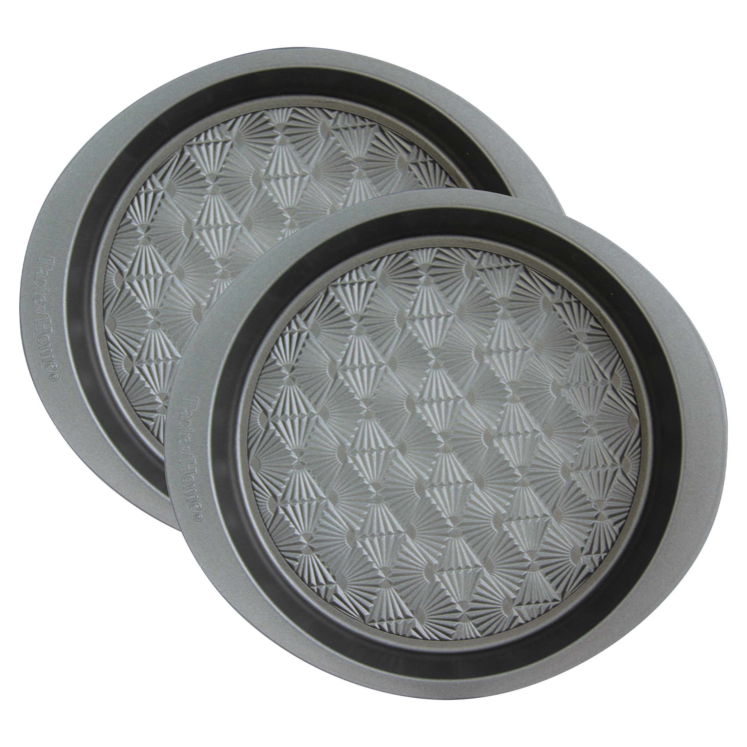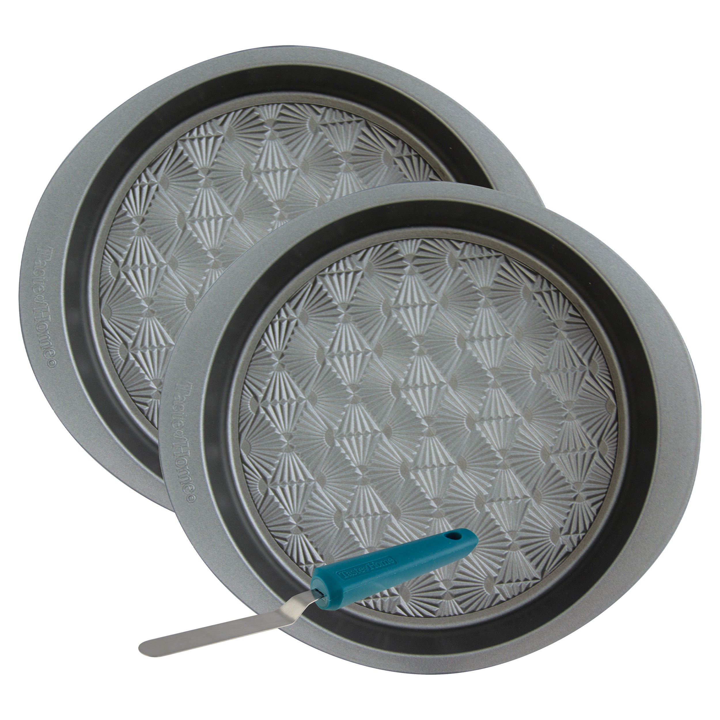 Bake your crowd-pleasing favorites in the Taste of Home® 9-Inch Non-Stick Metal Round Baking Pan. The whole family will enjoy a variety of baked foods, from sweet layer cakes to savory cornbread and crusty rolls. This durable bakeware is designed for everyday use and is an ideal choice for the home baker. Our bakeware features an embossed geometric design that strengthens the baking pans while increasing the air-flow to food, creating evenly distributed heat for consistent baking every time. This beautiful geometric pattern is carried throughout most of the Taste of Home® product lines, adding style and function to the tools in your kitchen. The Ash Gray color of the bakeware is complementary to modern kitchens. The premium non-stick coating allows for effortless release of foods and will enable you to prepare healthier treats with minimal to no prep to bakeware before baking process, leaving you to feel good about the food you're serving. The easy-to-grip handles make these baking pans easy to transfer in and out of the oven. When it's time to clean up, simply place your bakeware in the dishwasher for easy cleaning. All Taste of Home® products are designed in partnership with and rigorously tested by the Taste of Home test kitchen and are Test Kitchen-approved.